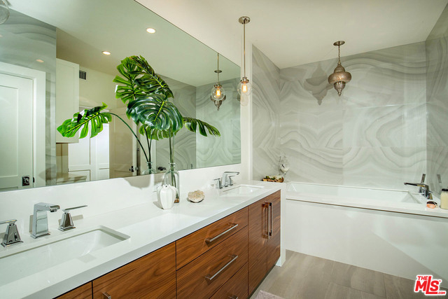 Beautifully renovated spacious 2-bedroom, 2 bathroom at one of the Marina's most sought after resort-style 24 hour guarded and gated communities, Villa Marina East IV, with pool, spa, tennis courts, and beautifully manicured grounds. This home has custom work throughout including kitchen cabinets with rollouts, Thermador 6 burner range, Waterstone fixtures, Carrera marble slab backsplash, quartz countertops, 2 drawer beverage refrigerator, high ceilings, 2 fireplaces with gorgeous surrounds, stylish wood floors. Master bathroom is stunning with walnut custom-made vanity with waterfall edge, large format tile in shower and tub area, two-person soaking tub, and ample storage. New LED lighting, electrical, ductwork, HVAC system, windows and more. This home has too many upgrades to list. Come and see this beauty, you'll be pleased that it is better in person.