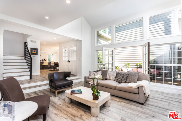 Stunning and tastefullly remodeled West Coast Modern home w/All The Finest Finishes In Great Marina Del Rey Location. Near the beach/water, restaurants, coffee shops, and specialty stores. Includes a security gated 24/7 w/guard! The house has an abundance of natural light with hi-vaulted ceilings and open layout. Gourmet chef's kitchen features beautiful Dekton counter tops, Thermador appliances- professional gas range with convection and self-clean, dishwasher, dual control wine fridge. Bosch fridge with Thermador professional handles.The kitchen leads out to the outdoor area, perfect for entertaining indoors and outdoors. Restoration Hardware Chandelier, New Window throughout, custom designed powder coated stair rails with a cashmere finish and more! Mastersuite boasts high ceilings and has an ensuite master bathroom with a lavish soaking tub and separate spa like shower.