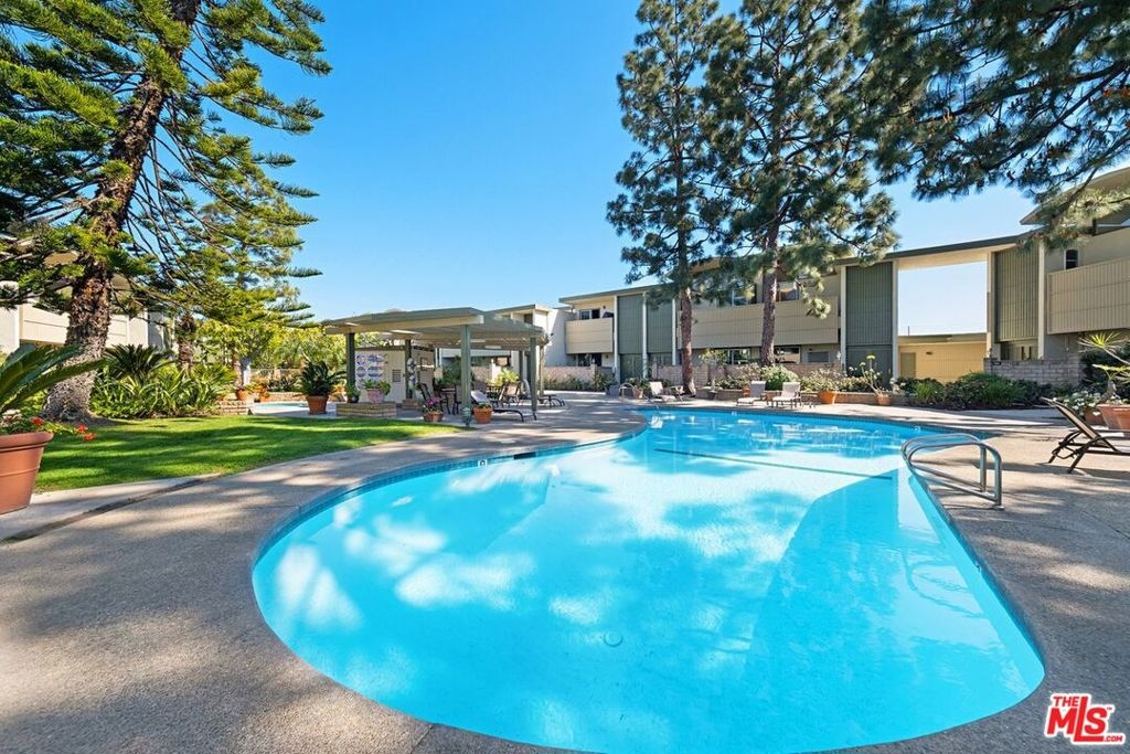 This prized corner, front facing townhouse, has it's own walkway and entrance. Located in the coveted Villa San Michele complex, it is on a no-through traffic street. First time on the market in over 40 years, this unit offers an incredible opportunity for improvements, updating, and enhancement to one's own taste and style. This light and airy home has a sizable enclosed patio off the living room. There are a few steps up to the dining room, kitchen, powder room, and laundry area. The 2nd floor master suite has high ceilings and a walk-on balcony. There is a second bedroom and bath as well as a bonus room with built in shelves that works well as an office or den. The gated, sprawling grassy grounds and walkways surround the pool, spa, and gathering area with tables and chairs for having lunch or a game of cards. It feels like a resort living!