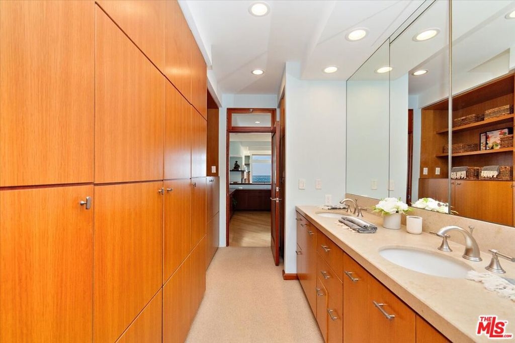 Unobstructed expansive North Corner with 2,270 square feet on nearly all one level. Gorgeous floor plan with wow factor 30 foot wide living room featuring custom built ins throughout. Ocean front Living room, patio, dining, kitchen and built in office all with panoramic views from Malibu to Catalina. Hear the waves all night and spend the day watching boats come in and out of the main Marina channel. The primary bedroom is private with beautiful organized closet space, en-suite bath with walk-in shower. The second bedroom is en-suite with an ocean view, walk in closet and many windows bringing in great light. Guest 1/2 powder room, large sauna and stack laundry inside. 3 car parking with a huge walk in storage space. A rare opportunity to live in this incredible community, close to the channel, canals, wonderful restaurants and the best beach in LA!