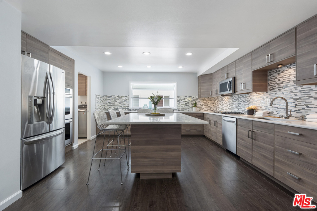 Amazing opportunity to own a rare beautifully styled 3 bed 2.5 bath townhome in over 1,900 square feet. Located in prime Villa Marina section of Marina del Rey. Enter into the open split-level living area with stone fireplace and sliding doors that lead out to a large private patio. Tons of natural light with two patios, plenty of windows, and skylights throughout. Large kitchen with elegant mosaic tile backsplash, modern cabinetry, stainless appliances, and large eat-in center island with laundry room off to the side. Master suite has balcony and en-suite bathroom with rain shower and jacuzzi tub. Secondary bedrooms are both generous in size with one currently set-up as a much needed home office. Located in a gated complex with close proximity to pool. You are just minutes to the beach, Waterside Marina shopping, trendy restaurants, AMC dine-in theater, bike path, and so much more.