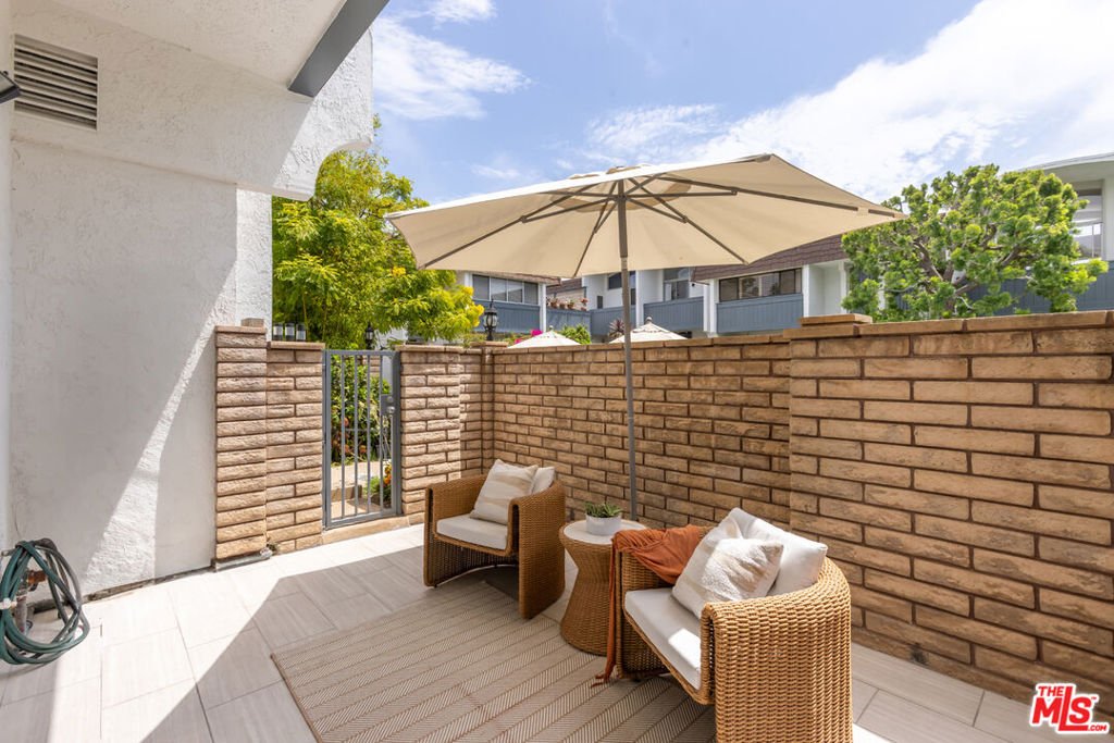 Marina del Rey living at its finest. Experience the ultimate California lifestyle in the highly desired Via Marina neighborhood. Perfectly positioned on the serene cul-de-sac of Fiji Way, this beautiful pool-view residence sits within the coveted gated community of Villa Sicilia. Blending casual sophistication with a breezy coastal vibe, the home offers the best of indoor/outdoor living. Step inside to a sunlit open floor plan with soaring ceilings, gallery-style white walls, recessed lighting, and gleaming wood floors. The inviting foyer opens to the expansive main living space, highlighted by a minimalist fireplace and dramatic floor-to-ceiling glass doors that flow seamlessly to a private patio ideal for relaxation or entertaining. The chef's kitchen is designed to impress with modern cabinetry, sleek quartz countertops, stainless steel appliances (including a double oven and gas cooktop), and a tray ceiling that adds depth and character. A spacious dining area adjoins the kitchen, perfect for hosting gatherings. Upstairs, the light-filled primary suite radiates warmth and comfort, boasting a striking barrel ceiling with exposed beams, a private balcony, ample storage, and a luxurious ensuite bath with dual vanities. Two additional bedrooms and a well-appointed hall bath complete the upper level. The private direct-access two-car garage is finished with epoxy floors and generous storage, enhancing the feel of a single-family home. Villa Sicilia offers residents lush tropical landscaping, secure gated access, and a sparkling pool, all just moments from world-class beaches, Marina waterside dining and entertainment, scenic bike paths, and shopping. This is the one you have been waiting for.
