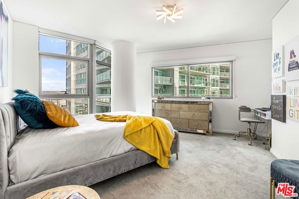 Designer done & upgraded 2BD/2.5BA in the COVE- Marina Del Rey's most prestigious high-rise development. Unit boasts a Spacious and open living room with separate large dining area. Enjoy unobstructed city lights and mountain views from virtually every room and the oversized balcony. Cook's and entertainer's dream with a large open gourmet kitchen, new white quartz counter tops, stainless steel refrigerator, new gas range, stainless-steel Bosch appliances & Studio Becker cabinets. Huge master bedroom and bath with separate shower and soaking tub, new quartz counters w/ dual sinks and generous storage. This condo boasts Mahogany wood floors, upgraded carpet, custom drapery in all rooms with black out shades in master, new custom paint in all rooms transform this unit into a designer showplace. The Cove is a full service building providing a 24 hr. desk, valet parking for residents and guests, pool, hot tub, outdoor BBQ , gym, rec lounge, library, conference room & guest suite. HOA includes water, trash, gas , internet and Direct TV.