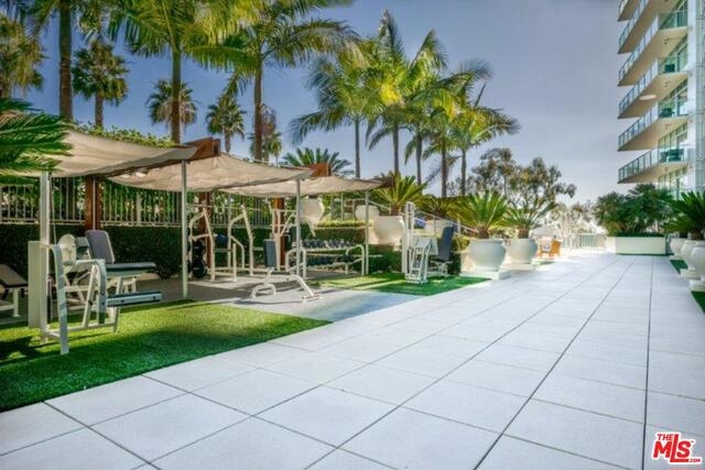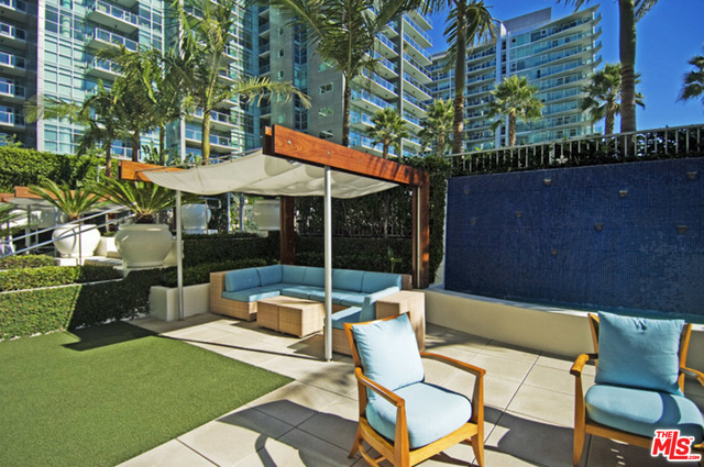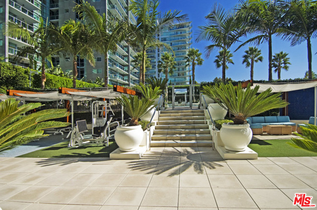 Upgraded 2 bedroom, 2 bathroom with a one of a kind 48 foot long private wrap around patio in the 5 star Azzurra ! This west facing corner unit features tons of natural light, 9 foot ceilings, new laminate floors in living room, stainless steel appliances, granite countertops, walk-in closets, in-unit side by side laundry and Prime 2 car parking spots located close to main elevator. This convenient 3rd floor unit is just steps away from the 24hr gym and pool . HOA includes EQ ins. cable, internet, water, trash.The Azzurra is a luxury high-rise building with superlative amenities and services including 24-hour complimentary guest valet parking, concierge, doorman, rooftop sky lounge, sparkling heated pool, 2 spas, conference, media lounges, superb indoor and outdoor fitness center, yoga/pilates training studio, fine art collection and much more! Close to beach, 25-mile bike path, dog walk, restaurants, shops, dine in movie theater, the 90 and 405 fwy, and 10 minutes to Lax airport.
