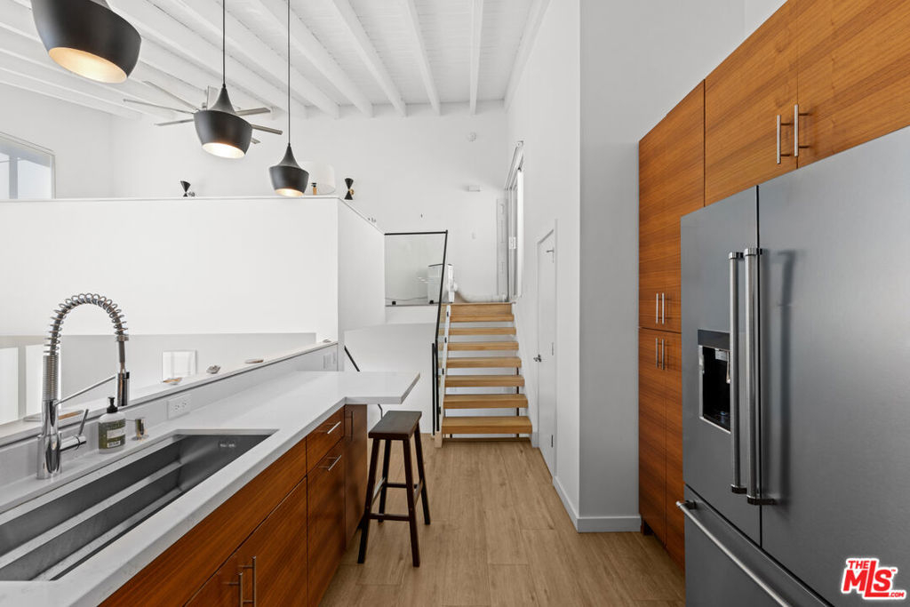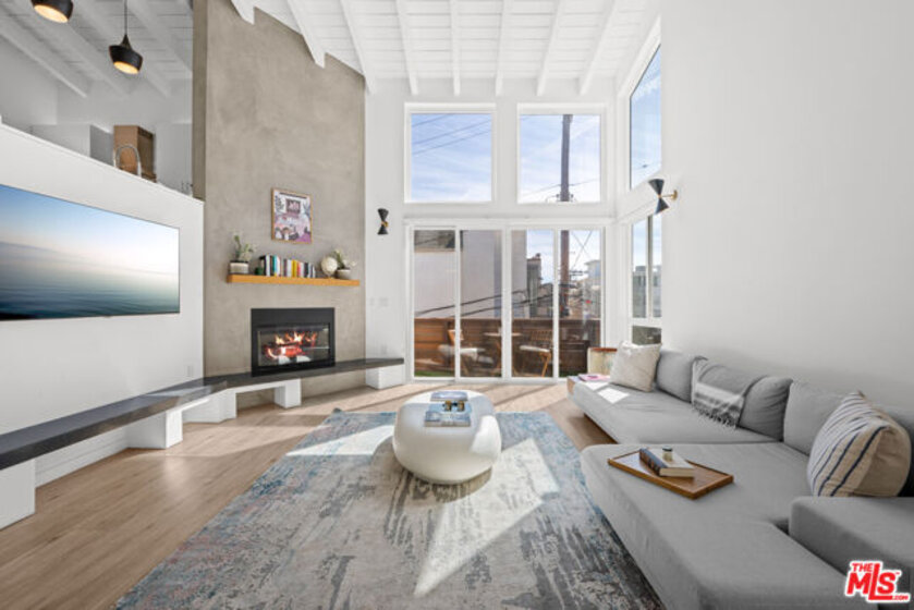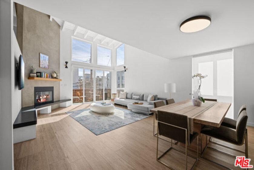 Live the Marina Peninsula beach lifestyle steps from the sand in this light-filled contemporary residence on a quiet walk street in Marina del Rey. Ideally positioned onthe sought-after southern end of the Peninsula, this multi-level condo offers airy interiors, architectural volume, and effortless coastal living. Spanning approximately 1,752 square feet, the open concept floor plan features soaring ceilings, expansive windows, wood flooring, and a gas fireplace that anchors the spacious living room. Natural light fills the great room, creating an inviting setting for both relaxed daily living and entertaining. The main level flows to a private patio where ocean breezes and walk-street charm define the experience. The modern kitchen features stainless steel appliances, stone countertops, andstreamlined cabinetry, opening seamlessly to the dining and living areas. Upstairs, the primary suite feels bright and serene with its own private balcony and a spa-inspired bath complete with a spacious walk-in shower and dual vanity. The secondary bedroom is generously sized with ample closet space and access to a well-appointed full bath. Overlooking the living space below, the loft provides exceptional flexibility as a thirdbedroom option, home office, or creative retreat. Additional highlights include a powder room, a dedicated laundry room with bonus flexspace, substantial interior storage, two tandem covered parking spaces, and a rareadditional storage closet. The community front patio offers an inviting outdoor space forlounging and entertaining. Located moments from the beach, the Venice Canals, Marina Jetty, scenic bike paths, and the dining and shopping along Abbot Kinney Boulevard, this home captures the essence of refined Peninsula living. Turnkey, coastal, and ideally positioned on the Marina Peninsula.