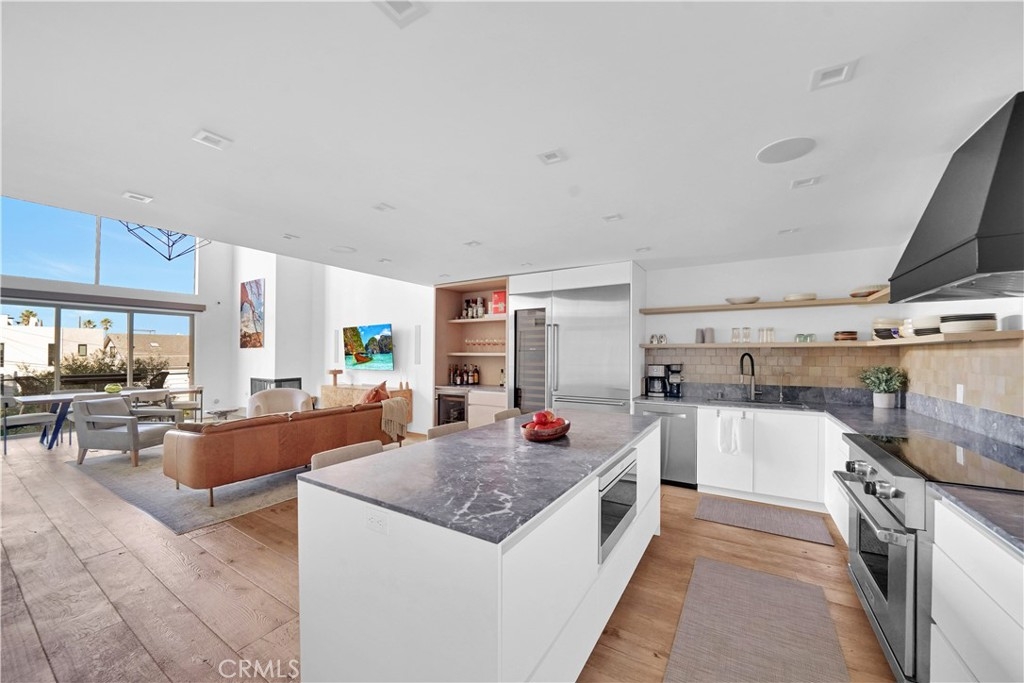 Indulge in coastal opulence with this newly renovated Marina del Rey 3-bedroom, 3 1/2-bathroom condo, steps from one of LA's finest beaches. Two-story ceilings and wide French oak plank flooring create an open, lofty ambiance, while the balcony offers a lovely ocean view. The rooftop patio is a haven for BBQ entertaining, hosting, sunny relaxation, and more. Inside, a gourmet custom kitchen showcases high-end Sub-Zero appliances, marble countertops, and open shelving,. Each bedroom features an ensuite bathroom with custom handmade tile, embodying bespoke luxury. The residence is equipped with Sonos surround sound, adding an immersive audio experience. A dedicated private laundry adds practicality, while two side-by-side garage spaces provide convenience to this exquisite residence. Immerse yourself in the epitome of Marina del Rey's beachside charm, where modern elegance meets the allure of California's coastal living.