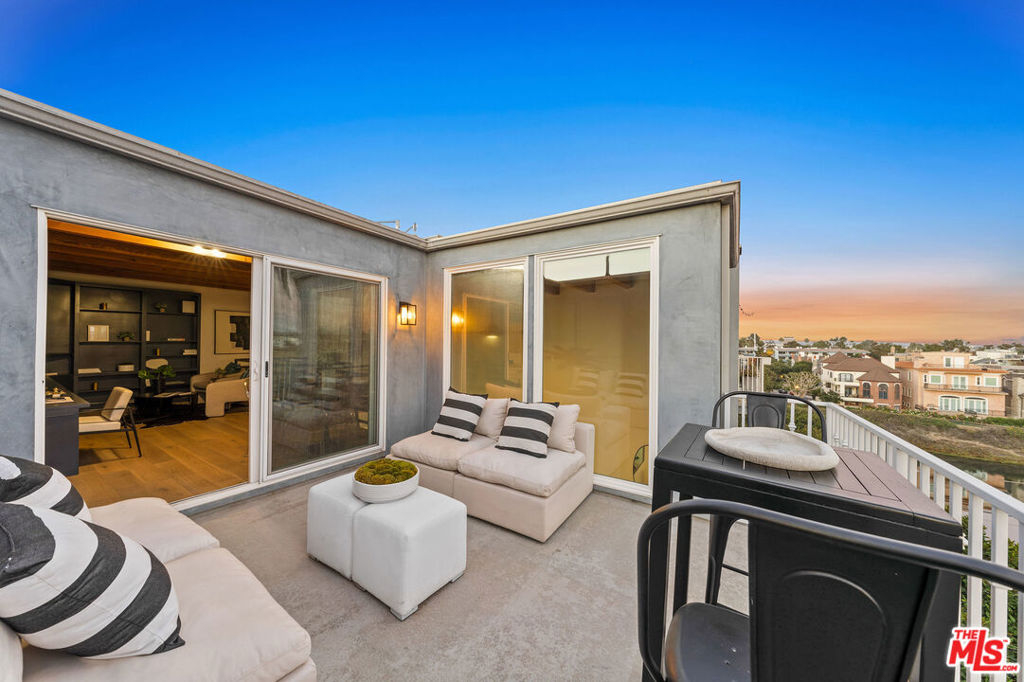 Incredible opportunity to call this renovated south facing 3 level townhouse with oversize windows and high ceilings your own. Everything in this 2-bedroom and 2 1/2-bathroom unit is brand new with wide plank floors, updated kitchen including white shaker cabinets and Viking appliances. This townhouse has just completed a full remodel and has been tastefully updated with an open contemporary style. The 3rd floor loft space features a built-in bookcase ideal as an office, den or entertainment room with a new mini fridge and sink opening to an outdoor deck/patio with ocean and canal views. Enjoy sunsets while watching the sailboats go by and listen to the waves crashing from the top-level patio. The main floor is the second level and includes the kitchen, living and dining area, with an abundance of light, and powder room. When you go downstairs to the 1st floor you find the 2 bedrooms and 2 bathrooms with the primary bathroom featuring an oversized shower. The washer dryer is conveniently located in the hallway off the bedrooms. All 3 levels open to private outdoor decks with ocean views. The building features a 2-car parking space, private storage locker in a gated garage with an elevator. All this and steps to the beach make this townhouse an opportunity that doesn't come along very often. This Marina Peninsula location is in an ideal neighborhood close to restaurants in a wonderful beach community. One pet per unit. Act quickly as this will not last.