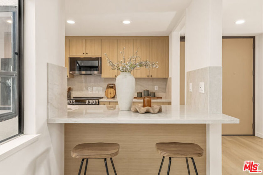 Extensively renovated 2-bedroom, 2-bathroom second-floor residence ideally positioned with a desirable west-facing exposure located just blocks from the beach on the exclusive Silver Strand in Marina del Rey. Offering an open and thoughtfully designed floor plan filled with natural light. The spacious living room features a cozy fireplace and opens to a private enclosed patio and flows seamlessly into the dining area with a custom built-in wine bar. The updated chef's kitchen showcases white oak-toned cabinetry, quartz countertops and backsplash, black stainless-steel appliances, and ample space for cooking and entertaining. Just off the kitchen breakfast nook, a light-filled atrium provides a tranquil space that enhances the home's airy feel offering an indoor/outdoor flow. The primary suite offers a relaxing retreat with an en-suite spa-like bathroom complete with a dual vanity and separate shower and soaking tub. The second well sized bedroom also offers an en-suite bathroom. Additional interior highlights include luxury vinyl plank flooring throughout, recessed lighting throughout, and a functional layout designed for both comfort and style. This home also includes an in-unit laundry room, upgraded electrical subpanel, two parking spaces, secure gated entry, and a gated garage with bike storage. Complex amenities include two pools, two spas, two saunas, four tennis courts, community room, and an exercise room. Monthly HOA fee includes internet, cable, earth quake insurance, water, and trash. This ideal Marina location is conveniently located near the Venice Pier, and the lively restaurants and shops on Washington Blvd. Feel worlds away while enjoying the conveniences of Westside living in this luxurious beach retreat.