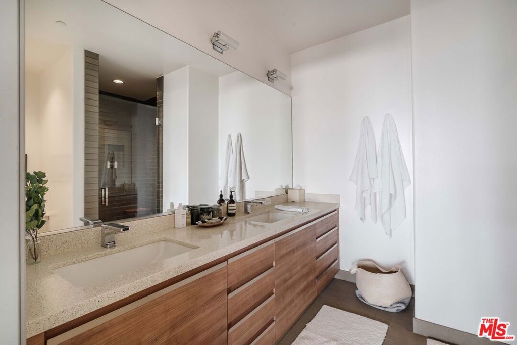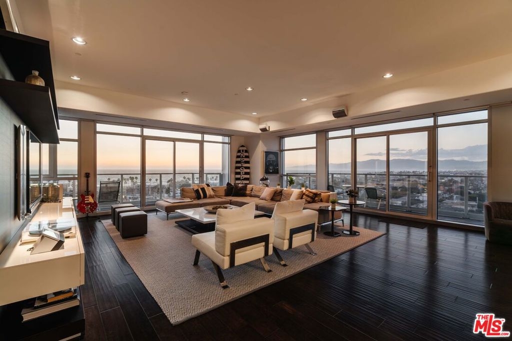 Set on the top floor of Latitude 33's coveted Sky Flats, this sprawling residence calls the entire northwest corner home, offering the building's best ocean, Catalina, city, and mountain views from nearly every room. Located on the border between Venice and Marina del Rey, this is potentially the most desirable penthouse on the Westside. Via a 24-hour guarded entry, guests are welcomed into the wide main hallway and modern layout flanked by floor-to-ceiling windows throughout. The main living area features an inviting open floorplan, encompassing a sizable living room, a well-appointed kitchen with an island, premium Wolf and Sub-Zero appliances, a breakfast bar, and multiple balconies that seamlessly flow out to breathtaking views. Moving down the hallway reveals an elegant formal dining room with impressive custom glass wine cellars, catering to the discerning tastes of wine enthusiasts while providing an opportunity to enjoy the surrounding views through the glass cellar walls. The main hallway also houses three generously-sized private bedroom suites, including the luxurious primary suite. The primary boasts a spacious bedroom with a private balcony, a spa-like bathroom featuring dual vanities, a makeup area, and an oversized shower, and a massive walk-in closet. The guest suites offer equally impressive views, ample closet space, and lavish private bathrooms. A large laundry room, walk-in pantry/storage room, and powder room round out the residence. Other features include a state-of-the-art Bang & Olufsen entertainment system, hardwood floors, electric blackout and sheer blinds, gallery walls, central HVAC, and two gated parking spaces along with Tesla charging. Building amenities include a private gym, concierge, 24-hour security, guest parking, and a gated garage. Only two blocks from the beach and just off of the famed Venice Canals, the residence also enjoys close proximity to the Westside's top restaurants, boutiques, galleries, and nightlife. Don't miss the opportunity to call this rare offering home.