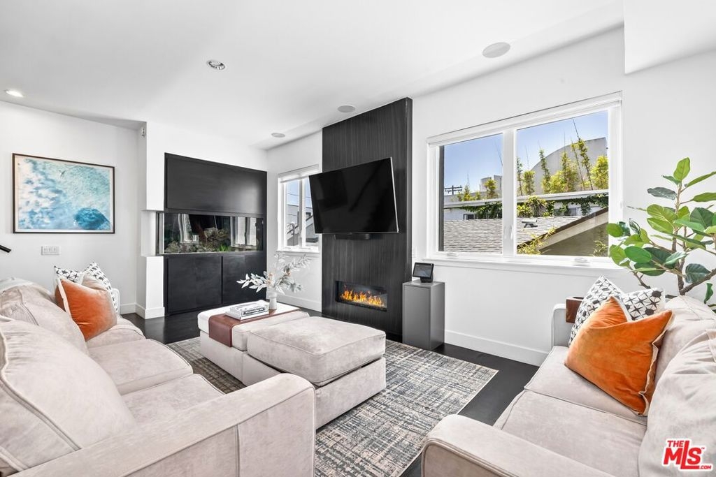 Just steps from the sand, this fully remodeled town home in the heart of Marina del Rey offers the ultimate blend of coastal living and modern design. With soaring ceilings, wide-plank wood floors, and floor-to-ceiling windows, the space feels airy and bright from the moment you enter. The main living area centers around a dramatic 250-gallon saltwater aquarium and a sleek fireplace, creating a striking focal point. The chef's kitchen is outfitted with high-end stainless steel appliances, custom cabinetry, and a stunning waterfall island perfect for entertaining. Two spacious bedrooms include spa-like en-suite bathrooms, while the upstairs loft with its own kitchenette offers flexibility as a home office, guest suite, gym, or creative space. The private rooftop deck is a true showstopper, with sweeping ocean, mountain, and city views ideal for relaxing, entertaining, or catching nightly sunsets. Other features include smart-home integration, a second fireplace in the primary suite, and two-car garage parking. All of this just moments from Venice, Abbot Kinney, and the best of Silicon Beach. Rarely does a property of this caliber, style, and location become available an exceptional opportunity in one of LA's most sought-after coastal enclaves.