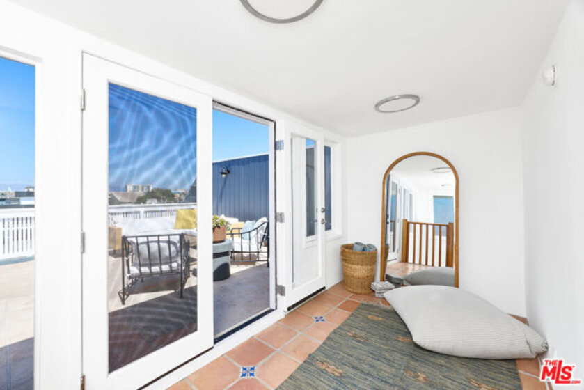 Elegant Top-Floor Residence on the Marina Peninsula! Experience coastal living at its finest in this stunning 3-bedroom, 3-bathroom top-floor home on the coveted Marina Peninsula. Updated with elegant, clean finishes throughout, this residence combines modern style with the ultimate beachside lifestyle. The open living room and kitchen are framed by soaring high ceilings and natural light, flowing seamlessly to a private balcony perfect for enjoying ocean breezes. The gourmet kitchen features sleek finishes and effortless connection to the main living area, creating an ideal space for entertaining or everyday comfort. A private roof deck crowns the home, showcasing panoramic ocean views. You can watch sailing races and boats entering the marina, just moments from the sand, this retreat offers both serenity and vibrancy enjoy morning walks along the beach, or stroll to nearby restaurants and coffee shops on Washington Boulevard. With three spacious bedrooms and three well-appointed bathrooms, this residence provides the perfect blend of comfort, luxury, and location. Whether hosting on the roof deck at sunset or enjoying the calm of your light-filled living room, this home captures the very best of Marina del Rey living.