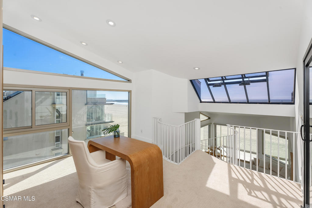 Wake up to the symphony of the Pacific Ocean and awe-inspiring views from Malibu to Palos Verdes. Soaring ceilings and walls of glass frame breathtaking vistas from nearly every room of this gorgeous Southwest facing corner-unit penthouse set directly on the sand of pristine Driftwood Beach. Designed for both elegance and ease, this 3-bedroom residence with a loft offers abundant space to match your coastal lifestyle. Perfectly situated in one of the best locations on the coveted Marina Peninsula, you'll enjoy privacy yet find local shopping, dining, and entertainment just moments away. Beautiful new wide plank LVP flooring flows throughout complemented by fresh paint, upgraded recessed lighting system, a refinished rooftop deck and new carpet on the second level. The kitchen, dining, and living areas blend seamlessly, creating an effortless flow for entertaining or simply enjoying daily life by the beach. Settle in by the fireplace or open the expansive wall of Fleetwood glass to your private deck-where the ocean breeze, rhythmic sound of waves, and crisp salt air set the tone for pure relaxation. Unwind by the fireplace in the spacious oceanfront Primary Suite and watch as the sun melts into the horizon. A walk-in closet and spa like bathroom add to the tranquility of this space. A large guest room with ensuite bath completes the main level. Skylights and a sweeping spiral staircase invite you to the light-filled loft / flex space which opens onto a stunning oceanfront rooftop deck with wet bar-ideal for sunset cocktails and sublime nights under the stars. A spacious third bedroom with its own fireplace an ensuite bath and dry sauna completes the upper level. Unforgettable views, three assigned spaces in a private gated garage, 2 staircases, exceptional location, 3 elegant fireplaces, and ensuite bathrooms for each bedroom make this incredible beachfront penthouse a rare find. Enjoy the ultimate blend of coastal tranquility, sophistication, and entertainment right in the heart of one of LA's most iconic beach cities.