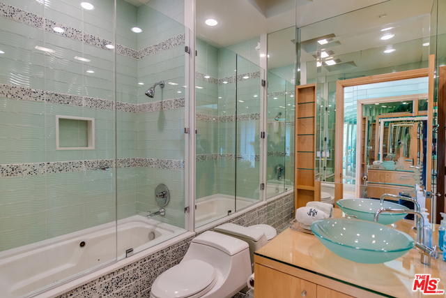 Rare and immaculate Oceanfront Penthouse with 3 bedrooms, 3 bathrooms, Loft, Roof deck and bonus kitchenette + 3 car parking. This condo is the creme de la creme at the beach with stunning finishes throughout. Two-story ceilings in the living room/ dining with a large oceanfront balcony. The most fabulous oceanfront master suite you have ever seen with an enormous walk in closet and a master bath that boasts a separate tub, shower, double sinks and two toilet rooms. Gourmet kitchen with stainless appliances, stone counters, custom cabinetry with an incredible amount of storage space. Spacious loft and rooftop deck which looks out from Catalina to Malibu. There is a service kitchen upstairs, also full bathroom. 3 car parking, plug in for electric car + walking distance to all of what the Marina and Silicon Beach have to offer.