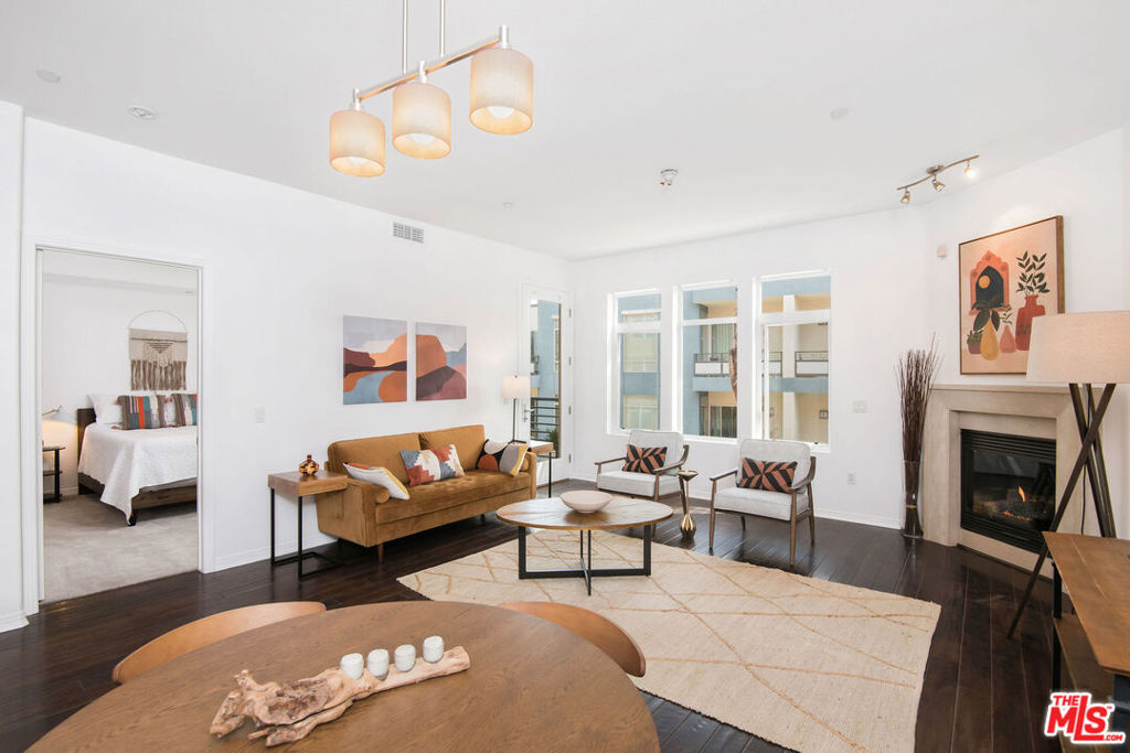 Beautiful and bright 1 bd/1.5 ba turnkey condo with large windows, open floor plan featuring cooks kitchen with Viking stainless steel appliances, granite counter tops, distressed walnut hardwood floors, cozy gas fireplace and nice flow for entertaining. Large master suite with new carpet in bedroom and master bath has newly updated tile and shower glass. The unit offers a nice private balcony plus 2 side by side parking spots. Excellent location in the Marina Arts District located in a gated secure building complete with spa, sauna, gym, community fire pit and BBQ grills. Ideally located to the marina, beach, shops, restaurants, theaters and LAX. A great fit for those looking to live the quintessential So Cal lifestyle.