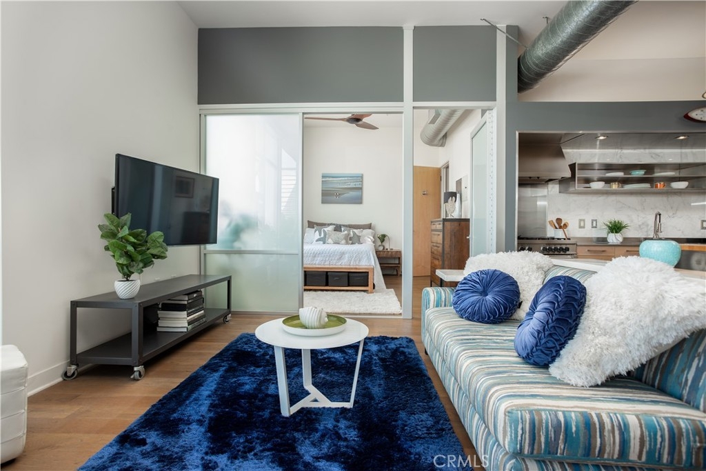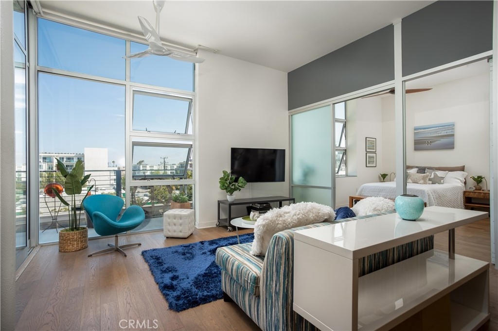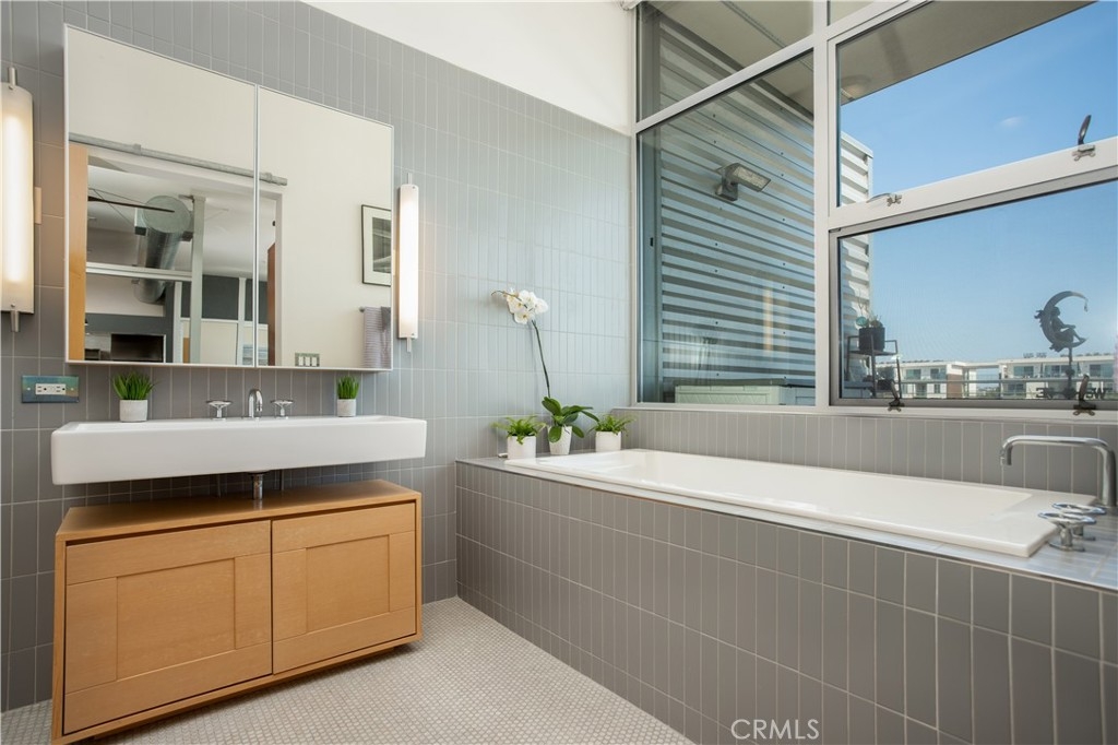 Rarely available 1+den Penthouse loft at highly coveted Gallery Lofts - this cool, open concept New York inspired flex space is your chance to live/work and design your own floorplan to fit your lifestyle! Sophisticated and industrial, soaring 11 ft penthouse ceilings and floor to ceiling special Fleetwood sliding doors facilitate seamless indoor/outdoor living with the spacious South-facing 200+ sqft private patio that looks out to an expansive view. You can see mountains and lights, not walls. As an A plan, with the same layout as the other 2 Bedroom A/A1 plans, easily convert the open concept "Master bedroom" back to a traditional bedroom if needed as a large master bedroom with ensuite and walk-in closet. Just add a sliding partition or wall it up with a door! Current owners like the current open “flow” and use it as an office. The other room, the "den", is an enclosed room (no closet) with ensuite which also serves as the common guest bathroom. Currently used as a bedroom. Come see how you can design it to suit your needs! Well-designed and high quality finishings can be seen throughout this light filled loft! Love cooking and entertaining? You’ll enjoy the chef’s kitchen with industrial stainless steel island, open shelving, pull down kitchen faucet, Liebherr fridge, Bertazzoni range, Miele dishwasher. Relax in the lovely master bathroom - beautifully tiled with soaker tub with separate rainfall shower and popular barn door, attached walk in closet with Elfa closet system. Other features include wide planked wood floors, new GE W/D in enclosed glass door closet, new tankless hot water tank, electronic blackout window shades, two tandem parking spaces close to elevators in gated garage, ample guest parking and even several EV chargers. Great entertaining in the common courtyard under gorgeous lush trees complete with outdoor lounge, fireplace and kitchens. In the Marina Arts District close to Marina Marketplace, Gelsons, Pavillions, Abbott Kinney restaurants, Venice beach and biking trails! OPEN SAT/SUN Aug 14, 15 - 2-5pm. Offers due by Tuesday at 3pm.