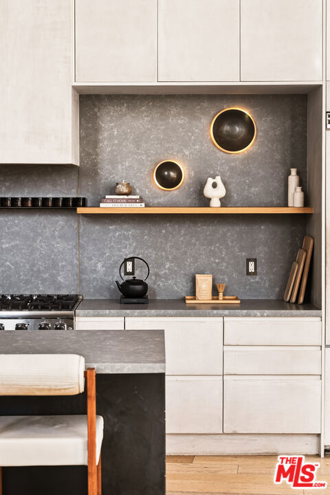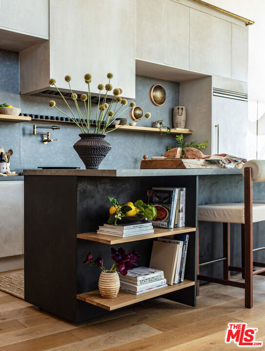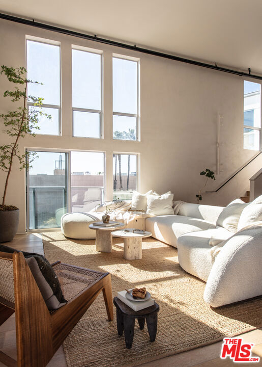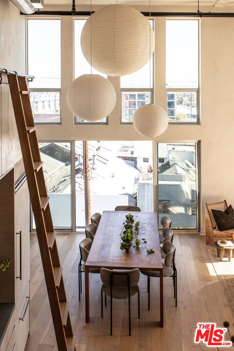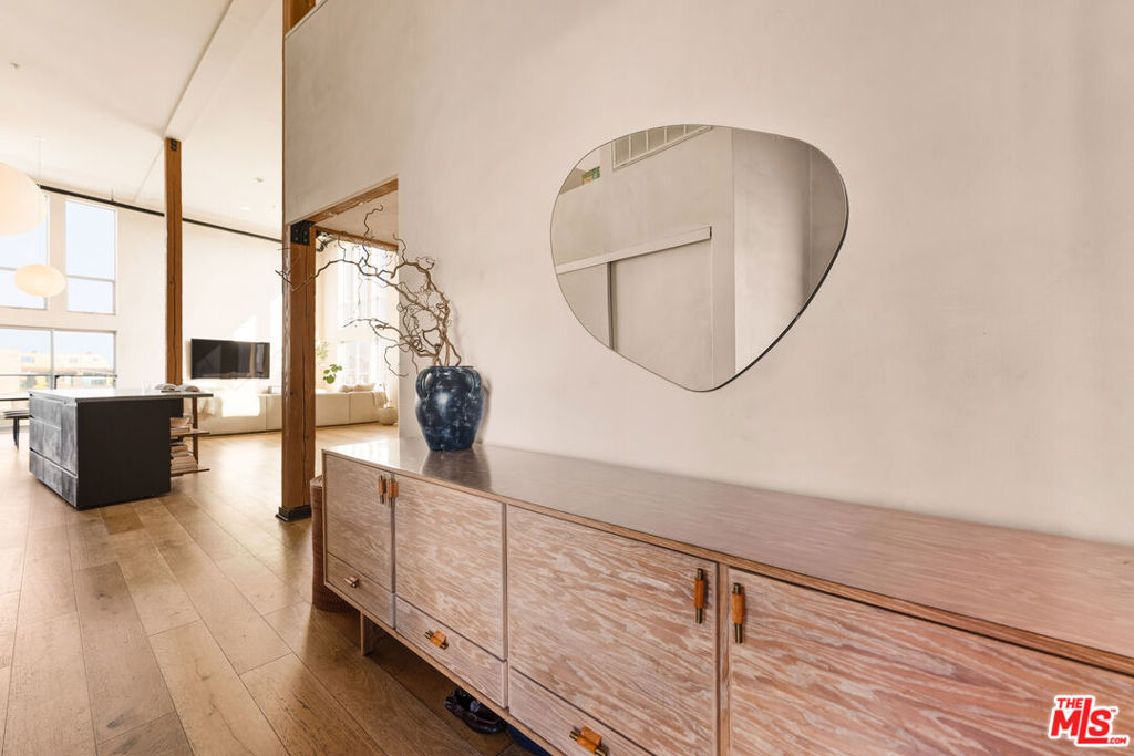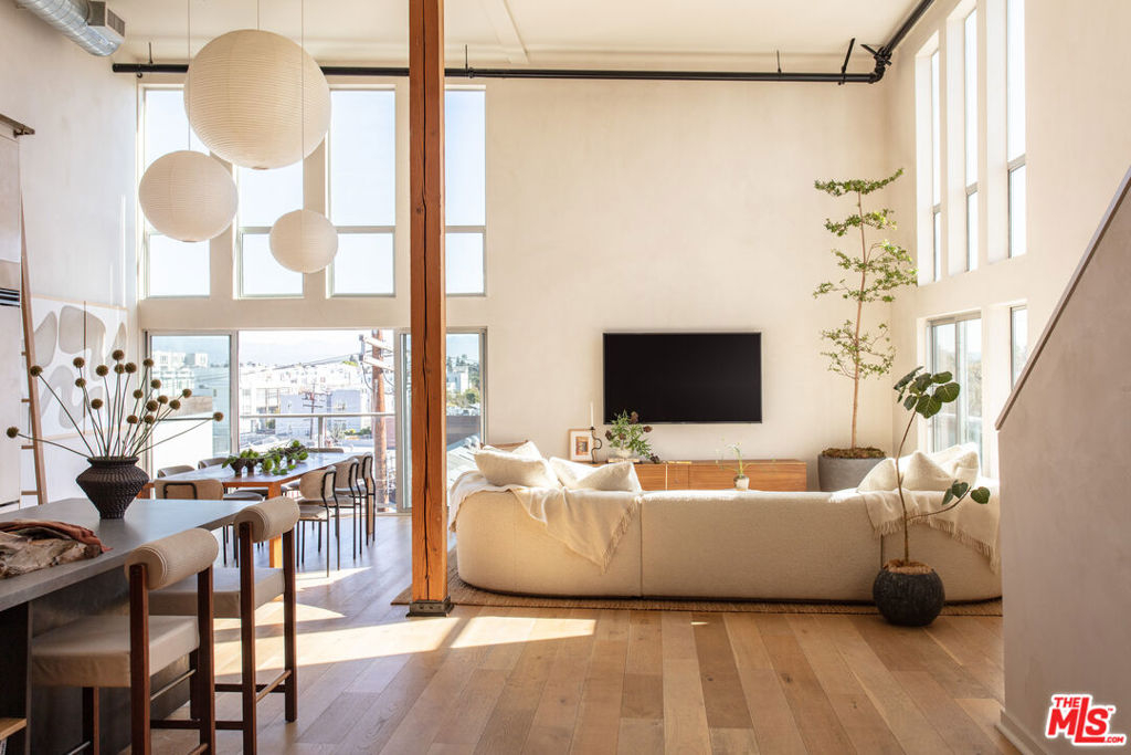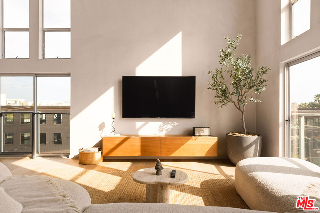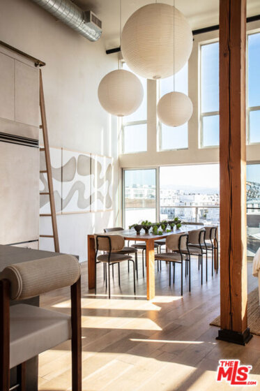 A rare, Architectural Digest featured penthouse loft offering the ultimate blend of beach, city, and loft living. This top-floor corner unit with only one common wall features soaring 17-foot ceilings, dramatic city views, and a light-filled two-story open floor plan designed for both everyday living and creative expression.The loft's transformation includes over $225,000 in bespoke upgrades, highlighted by Kamp Studios' signature natural, eco-friendly matte plaster throughout, including a custom plaster finish for the kitchen cabinetry. Handcrafted wood and brass elements by Cooper Reynolds define the space, from the statement kitchen island to custom ladder. The kitchen is a true centerpiece, featuring custom Italian cabinetry by Aria Design, Grey Atlantis Stealth quartz slabs, artisanal detailing, and a full suite of top-of-the-line Viking appliances, including a 48" all-gas professional range and custom-panel refrigerator.Curated designer lighting and furnishings include Noguchi Akari light sculptures, handmade wall lighting by Cuff Studio, custom bar stools by Thomas Hayes, and a one-of-a-kind art installation by Hannah Polskin. Adding a personal touch, the owner designed a bespoke boucle sofa, "Freya," now part of Nathan Anthony's permanent collection. Ideally located just a 2-minute walk to Villa Marina Marketplace, offering Equinox, AMC Theater, Gelson's, and an array of shops and restaurants. The building also features a Kelly Wearstler designed courtyard, along with a gym, pool, spa, secured guest parking, and two secured underground parking spaces.A truly special penthouse loft where elevated design, privacy, and walkable coastal living converge.
