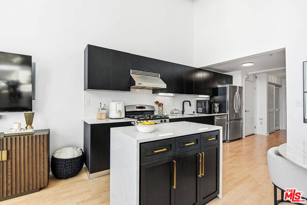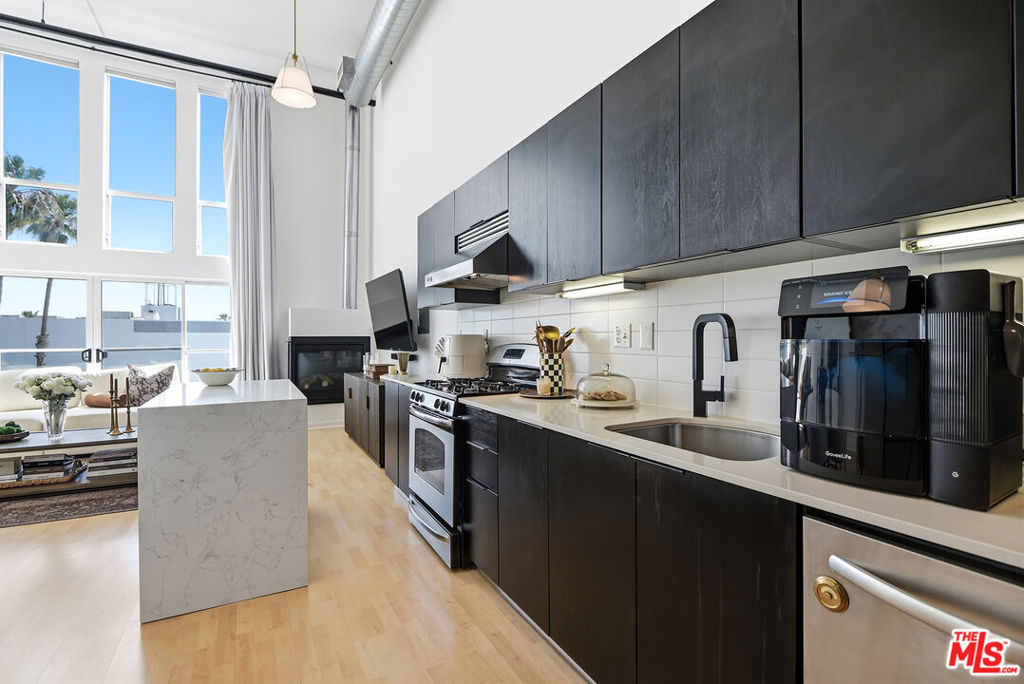 Experience urban living in this open and spacious 1-bedroom, 2-bathroom industrial loft in the highly desirable West End building, nestled in the vibrant Marina del Rey arts district, featuring a unique fully enclosed office space perfect for working from home or creative pursuits. This expansive floorplan features soaring high ceilings and southern exposure, complemented by floor-to-ceiling windows that flood the space with natural light. Enjoy the sliding doors opening to your private Juliet balcony and the chef's kitchen is a culinary dream, equipped with stainless steel appliances, a stylish tile backsplash, custom cabinetry, and center island. The bedroom suite is tucked away upstairs with an en-suite spa-like bathroom and ample closet space. Additional perks include two parking spaces, central air and heat, and in-unit laundry. Residents enjoy access to an array of top-notch amenities, including an interior courtyard, daily maintenance of common areas, a full gym, two Jacuzzi pools, a spa, fire pit, and a BBQ area perfect for entertaining. The building also offers ample guest parking, a bike storage locker, EV parking, and a gated secured entry. Located just a short bike ride from the Marina and beach, and mere blocks from a park and Marina Marketplace with shopping, movies, and dining, this loft offers the perfect blend of convenience and luxury.