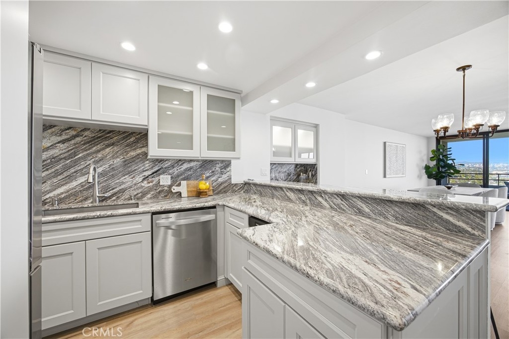 Welcome to this fully remodeled 3 bed, 2 bath condo and experience high rise living. This stunning sixth floor end unit is located the legendary Marina City Club where sweeping city views meet resort-style luxury. Fully remodeled with neutral luxury vinyl plank floors, crisp white paint, and tall ceilings, this condo is the perfect blend of modern elegance and effortless sophistication. The open-concept living area dazzles with a wall of windows framing downtown LA, the historic Hollywood Sign, and breathtaking sunsets over the hills. The gourmet kitchen is a showstopper, boasting striking granite countertops with full backsplash, shaker white cabinetry, oversized grey stone sink, stainless steel appliances, and an eat-up kitchen counter. Effortless entertaining with a coffee bar plus a butler’s service station for the dining space adds to the convenience. The primary suite is a true retreat, featuring endless views, dual closets and a spa-inspired bathroom with a floor-to-ceiling tiled glass-enclosed shower. The secondary bathroom offers a large soaking tub and modern designer tile, perfect for relaxing after a long day. Both secondary bedrooms are roomy and great for guests or home office. Marina City is a full-service, luxury oasis where you will be able to enjoy gate guarded security, resort-style pools and spas, tennis and pickleball courts, dog park, fully equipped gym, yoga, spin & Pilates, beauty salon, café, gourmet restaurant and bar, plus car wash and maid services. Located right on the marina, boat parking is available, making it a true waterfront paradise. This unit includes two assigned garage spaces and delivers the ultimate combination of style, comfort, and iconic Los Angeles living. With shopping, restaurants, freeway access close by, and a short drive to LAX, this is a property is an that is not only convenient but the full package.