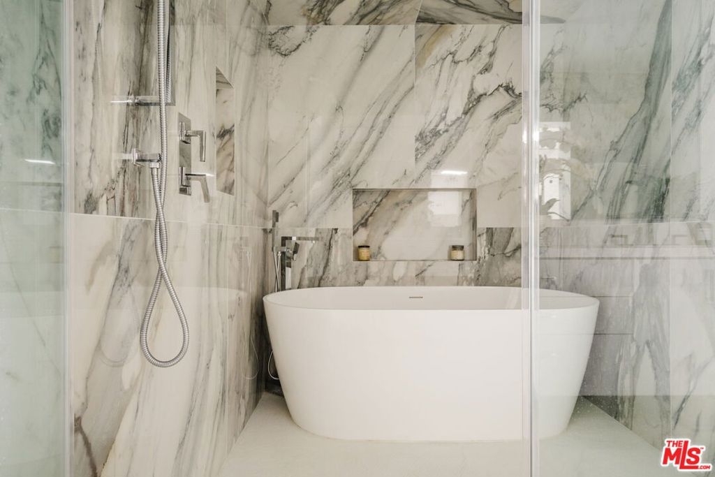 Tucked inside a privately gated community in the heart of Silicon Beach, this refreshed residence offers a spacious open floor plan with the perfect blend of space, privacy, and location. Upon entering, a welcoming entryway greets you with built-in bookshelves and a coat closet. In the open living area, you'll find soaring ceilings, hardwood floors, a fireplace, updated powder room, and large sliding doors opening to your own private patio, ideal for outdoor dining or relaxing in complete privacy. Make your way to the formal dining area complete with built-ins, a wet bar, all in convenient proximity to the spacious chef's kitchen which features a center island, stainless steel appliances and beautiful cabinetry. An ideal layout upstairs includes both en-suite bedrooms on opposite ends for maximum privacy. The owner's suite is generously sized with plenty of natural light, ample closet space, and a remodeled en-suite bath featuring a soaking tub, double vanity, walk-in shower and built in cabinetry. On the other end, the second bedroom is equally well appointed with its own remodeled en-suite bath, spacious closet, and the perfect guest suite, home office, or both. There is central AC and heat throughout. In-unit washer and dryer and private two-car garage with storage and direct entry complete the main level. The community offers resort-level living with secured gated entry, four pools, four spas, two racquetball courts, and plenty of guest parking. Beautifully landscaped grounds and well-maintained common areas throughout. A short distance to Marina del Rey's best restaurants, shopping and movie theaters. Silicon Beach living at its finest.