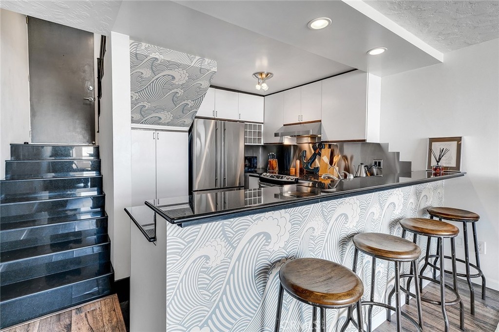 LOWEST PRICED OCEANFRONT UNIT on Silicon Beach, featuring panoramic views of the pacific. Watch sail boats and sunsets all from the comfort of your bed or the spacious private beach-front patio. This multilevel two bedroom/two bath is flooded with natural light thanks to two-story floor-to-ceiling windows. Upgrades include: custom closets, stainless steel appliances, wide-plank hardwood floors and granite tile throughout. Two side-by-side garage parking, walking distance to many excellent dining/shopping experiences. Work from home while listening to the waves crash on the beach!