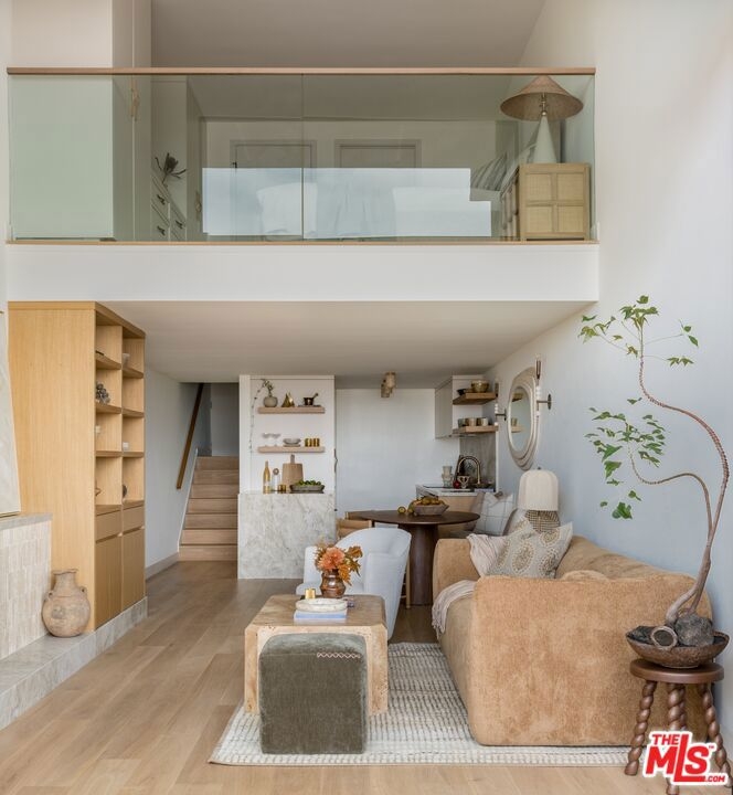Experience coastal luxury in this stunning oceanfront condo, where high ceilings and elegant finishes create a serene beach retreat. Enjoy breathtaking views of the ocean and marina from your spacious waterfront patio, seamlessly accessible from the living area with a brand new La Cantina Folding Door system, allowing the fresh sea breeze to flow freely to create the perfect indoor/outdoor aura, ideal for entertaining. Step inside to discover brand new hardwood flooring throughout, enhancing the unit's modern aesthetic. The gourmet kitchen is a chef's dream, featuring exquisite Taj Mahal countertops and backsplash that extend to the fireplace hearth. Equipped with top-of-the-line appliances including a brand new Fisher and Paykel electric cooktop and oven, a French Door smart refrigerator, Bosch dishwasher, Zephyr range hood, and Sharp microwave this kitchen is both functional and stylish. A new Delta faucet and sink, along with custom built-ins, a cozy dining nook, and elegant fireplace shelves designed by Nu Design, complete this culinary haven. The kitchen showcases white oak flat slab doors with integrated finger pulls for a sleek finish. Relax by the brand new electric fireplace by Modern Flames, set against a designer tile surrounded in Beige Travertine by Cle Tile, providing warmth and ambiance. Both bathrooms have been exquisitely updated with luxurious stone flooring. The guest bathroom features a custom oak vanity, Phylrich plumbing fixtures, a new bathtub, and a beautiful zellige tile surrounded by Zia Tile. The primary bathroom offers a custom oak vanity, Watermark plumbing fixtures, and a stunning shower wall treatment in Tadelakt plaster finish, creating a spa-like atmosphere. As you ascend the glass staircase with a solid oak wood cap, you'll appreciate the thoughtful design and craftsmanship throughout. The primary bedroom boasts custom closet built-ins by Nu Design and premium hardware by Manzoni, maximizing space and elegance.The patio, adorned with all new TimberTech composite flooring and a stylish Rejuvenation light fixture, is perfect for outdoor entertaining or simply soaking in the tranquil ocean views. Enjoy the privacy and exclusivity of this beachfront haven, where elegance meets the beauty of nature. Premier location right near the jetty. Watch the boats come in and out of the harbor. 2 parking spots across from each other. Don't miss the opportunity to own this exceptional coastal gem! All furniture and accessories in the unit were carefully curated and hand picked to go with the design. Staged by California Coastal and all available for purchase.